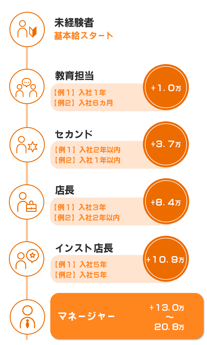 店舗の責任者としての役割に対し、上記年収を支給します。
