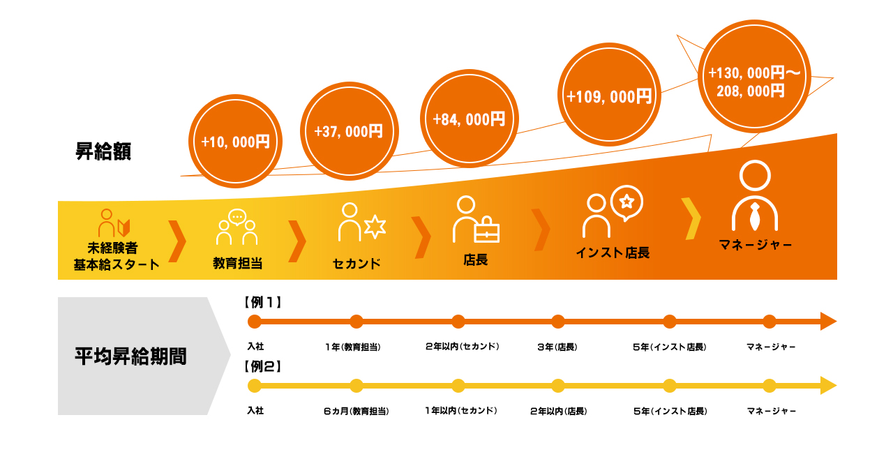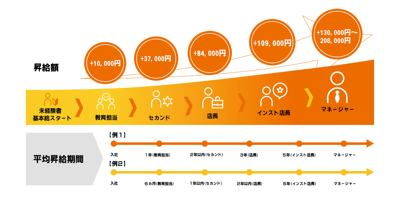 マネージャー⇒130,000円~208,000円