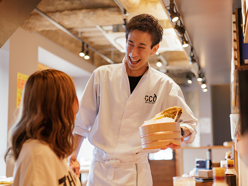 仲良くなるきっかけを掴むために、あえて油を多めにかけて、火をわざと高く上げるパフォーマンスをしたり、「今日はこれがおいしいですよ」とおススメメニューを紹介して、会話のきっかけを作っていきます。